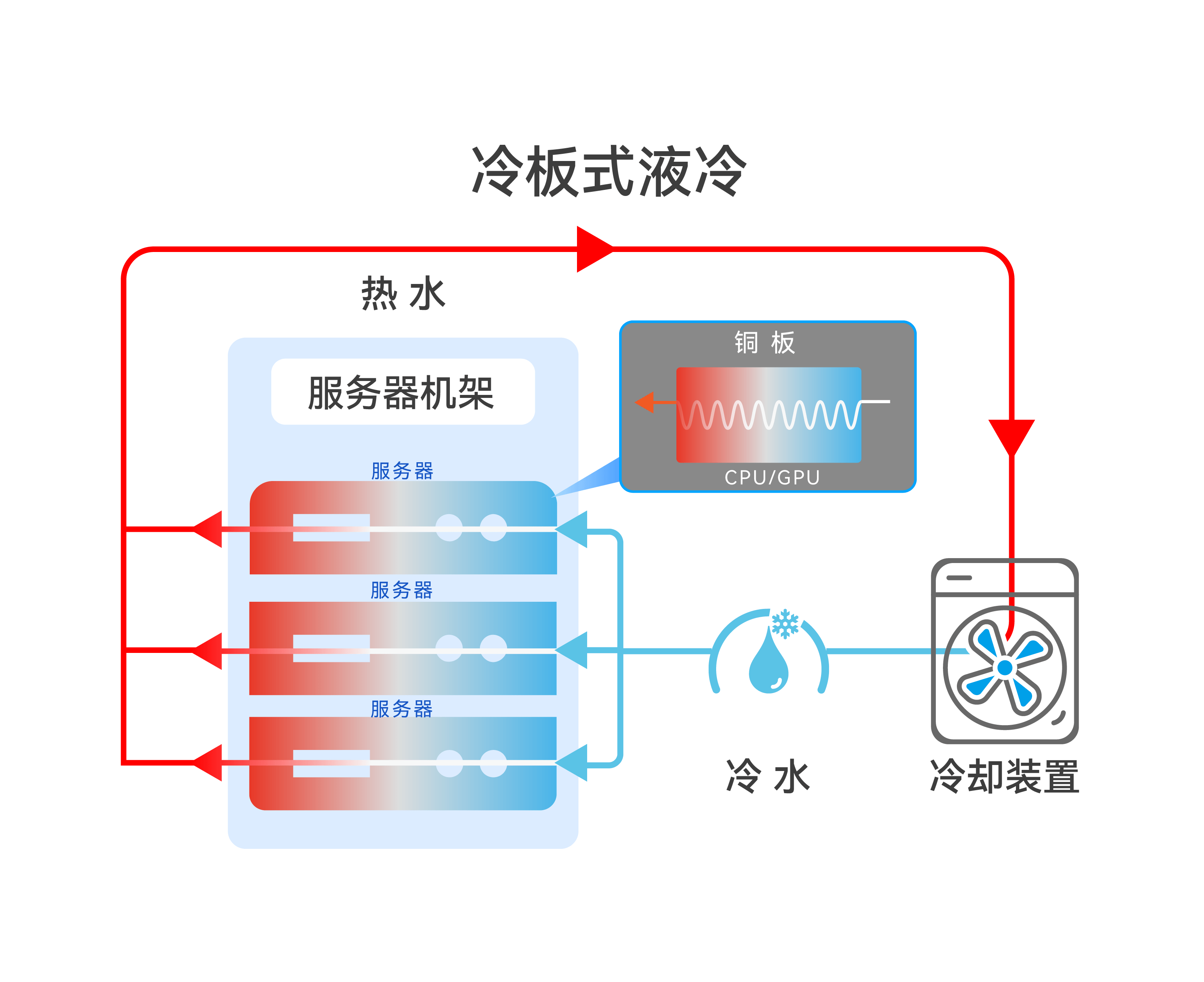 冷板式液冷是一种常见的芯片散热方式,它顺利获得铜、铝等高导热金属构成的封闭腔体制成的冷板将芯片等高热密度元器件的热量传递给循环管道中的冷却剂,然后利用冷却剂将热量带走,进而实现散热。